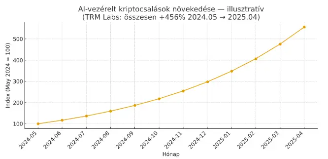 A TRM Labs 2025-ös jelentése szerint egyetlen év alatt, 2024 májusa és 2025 áprilisa között 456 százalékkal nőtt az AI-vezérelt kriptocsalások száma világszerte.