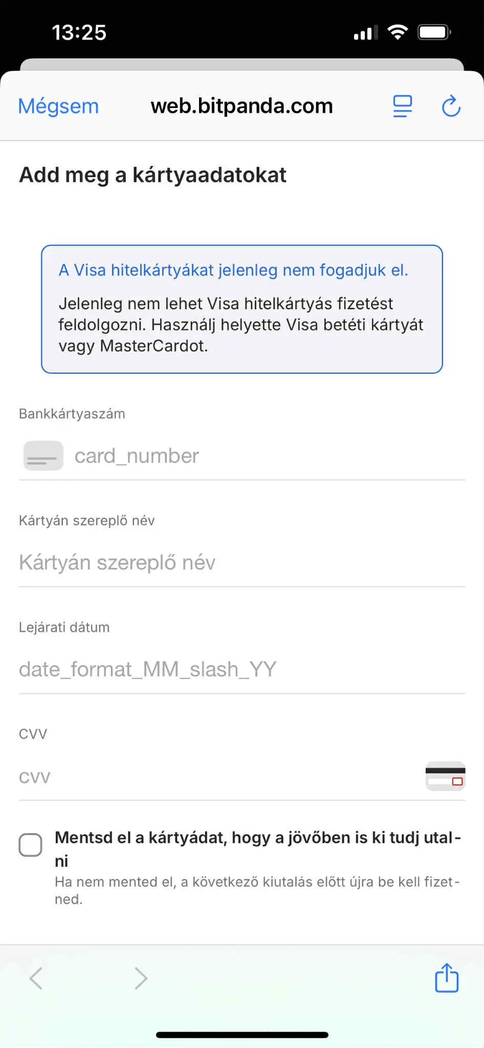 A Bitpandán bankkártyával (pl. Visa, Mastercard) közvetlenül magyar forintból is lehet Bitcoint vásárolni.